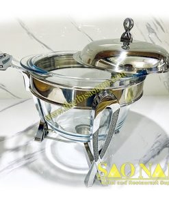 ROUND ROLL TOP CHAFING DISH WITH GLASS TRAY / NỒI HÂM THỨC ĂN SACONA TRÒN KHAY THỦY TINH
