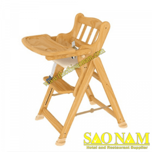 Thứ nhất là ghế ăn bằng gỗ, có ưu điểm là rất vững chắc, chống đổ ngã, có dây an toàn cho bé. Ghế này có thể điều chỉnh được 3-4 mức độ cao thấp cho bé ngồi ăn chung với cả nhà. Ghế có thể gấp gọn và dễ dàng lau sạch. Nhược điểm của nó là nặng nên khó di chuyển nếu bố mẹ muốn mang theo khi đưa con về quê hay đi du lịch.