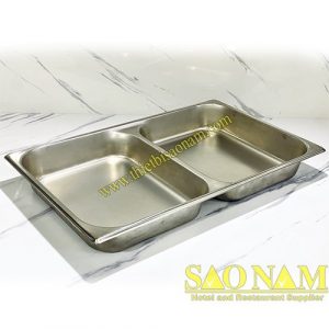 - Đối với nồi hâm buffet hcn có thể dùng khay inox 1/1, khay inox ½ hoặc khay inox 1/3.